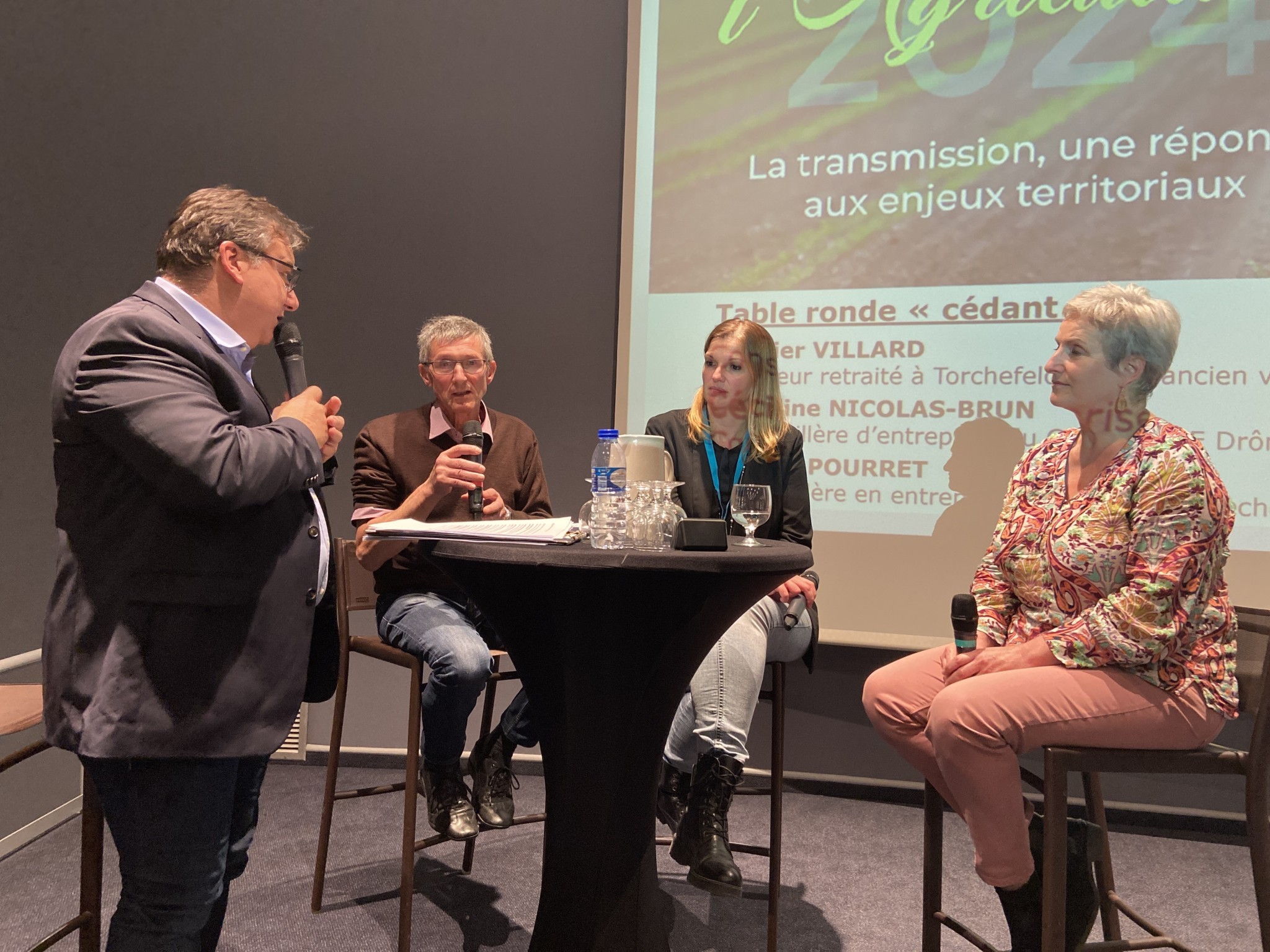 Après la conférence, place aux tables rondes introduites par plusieurs vidéos de témoignages d’agriculteurs, repreneurs ou cédants. Didier Villard, ancien président de la chambre d’agriculture de l’Isère et agriculteur retraité, a témoigné de sa transmission « réussie ». Selon lui « il n’y a pas de bon moment » pour céder son exploitation. Il insiste sur l’importance de « respecter l’innovation et les réflexions des jeunes ». Autre facteur d’importance : l’anticipation. Adeline Nicolas-Brun, conseillère à Cerfrance, et Cécile Pourret, conseillère à la MSA ADL, le confirment. Entre cinq et dix ans sont nécessaires pour penser sa transmission. Didier Villard insiste sur l’importance de quitter les lieux pour laisser la place à un nouveau projet. Lui a aussi vendu sa maison d’enfance et familiale située au milieu de sa ferme. Il a donc anticipé son déménagement. « Quand on veut céder, on doit se convaincre et s’interroger : comment ferait-on si c’était son propre enfant qu’on installait ? », expose ce dernier.