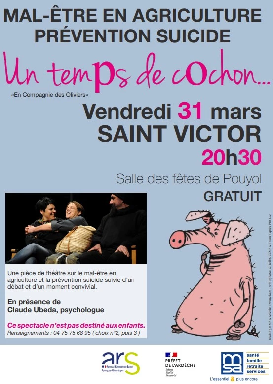 Un spectacle gratuit sur le mal-être agricole est proposé vendredi 31 mars, à Saint-Victor, en Ardèche.