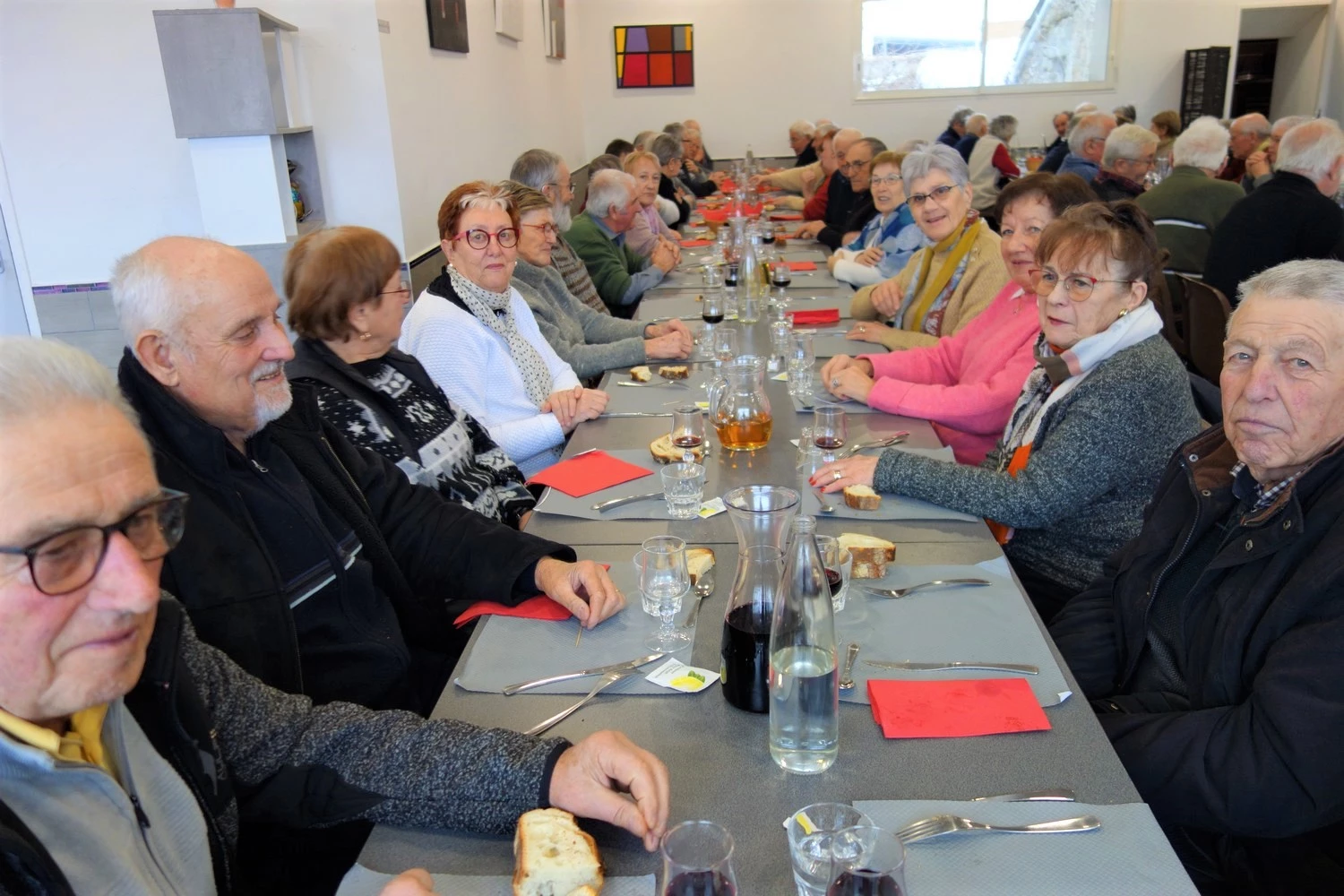 Les anciens réunis autour d'un repas de l'amitié