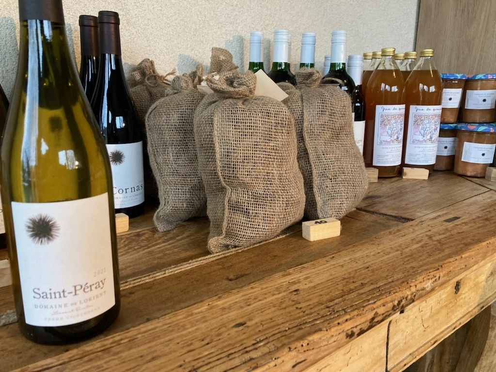 Le vin, en appellation Saint-Péray et en Cornas, représente toutefois le principal revenu du domaine. En 2022, la saison s’est conclue en beauté avec plus de 160 hectolitres vinifiés. Les productions annexes ont quant à elles permis de récolter 3 tonnes de pommes pour faire du jus, 1500 kg d’olives, ensuite transformées en huile, ainsi que des châtaignes et des amandes.